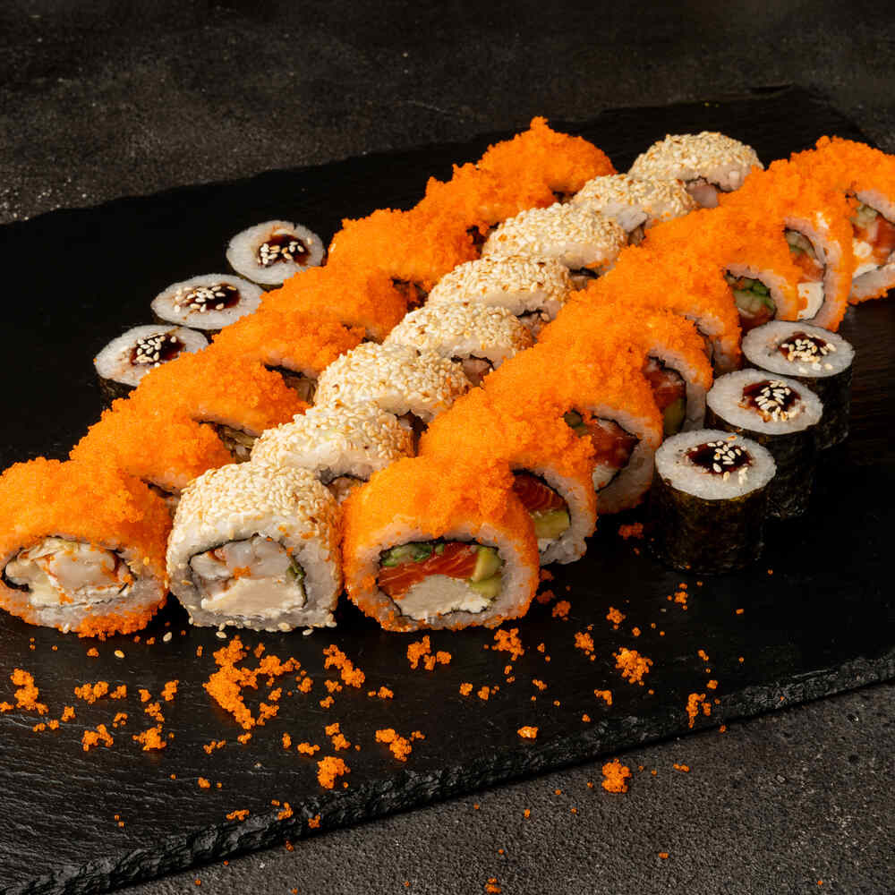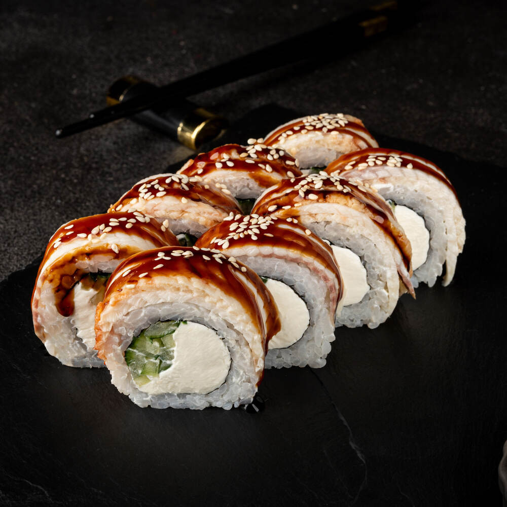 Каліфорнія з креветкою та вугрем в ікрі